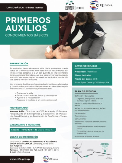 En cualquier faceta de nuestra vida diaria, cualquiera puede verse en la necesidad de tener que realizar los primeros auxilios a otras personas o a un ser querido, es imprescindible tener conocimientos básicos ya que esos primeros minutos de atención hasta que lleguen los servicios sanitarios son decisivos para la vida de la víctima.